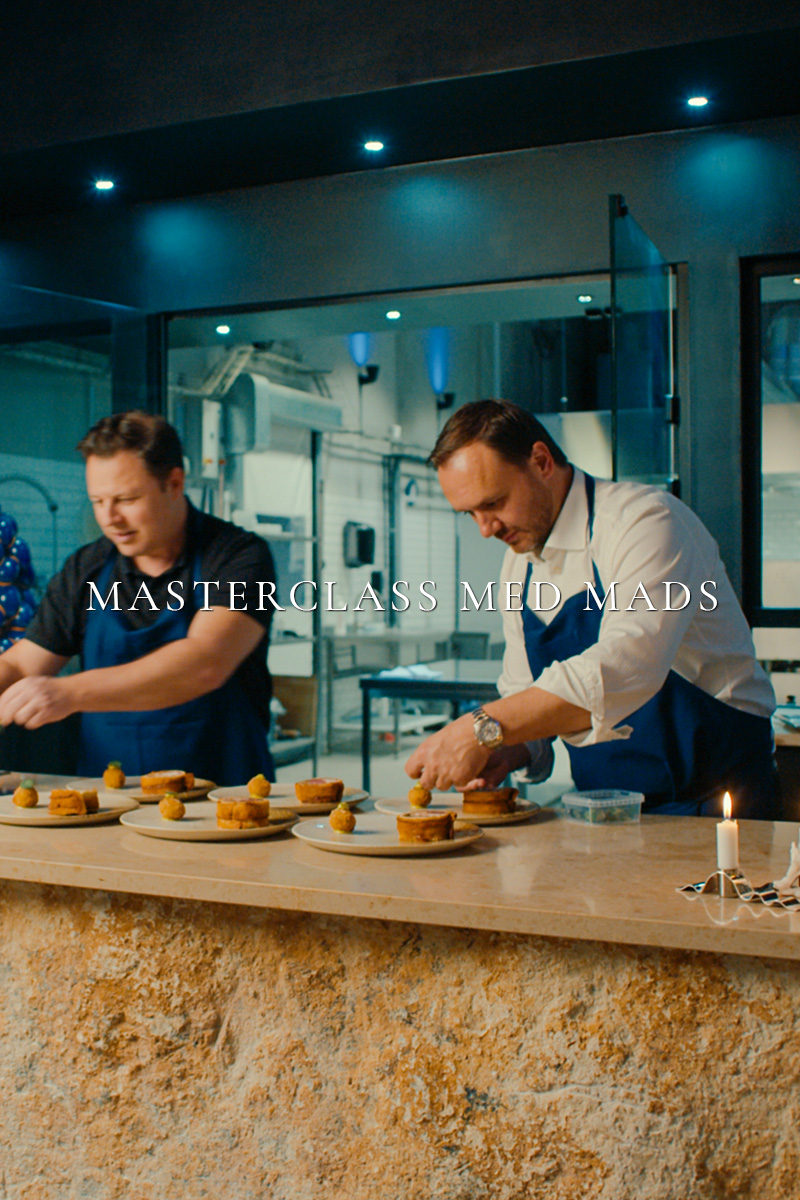 Til vores Masterclasses kan du og dit selskab se frem til en lærerig aften i køkkenet med Mads Cortsen. Han har sørget for, at I kan mæske jer i herlige snacks og liflige bobler mens I forbedrer jeres kulinariske evner, og I vil komme til at arbejde med spændende teknikker, eksklusive råvarer og nye kreationer. Der er til Masterclass med Mads også rig mulighed for at møde andre gastronomisk interessede – og det vil være nogle hyggelige aftener i vores rammer, hvor der er højt til loftet (og selvfølgelig særdeles højt humør!).